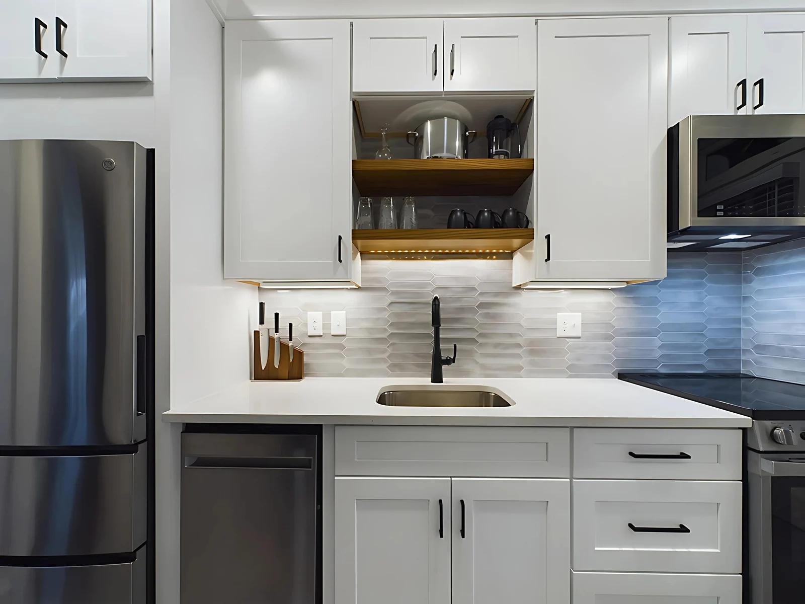 “I have a very small kitchen and was looking for cabinet refacing and new countertops. I’m just floored at how beautiful this kitchen looks. I even have to force myself to go to sleep and stop staring at my kitchen each night. It was 100% worth the money and I would recommend them to anyone who wants quality work for a great price.“