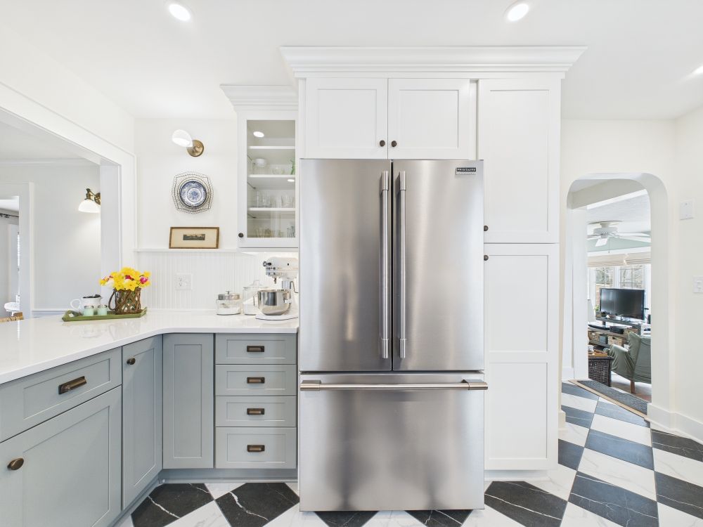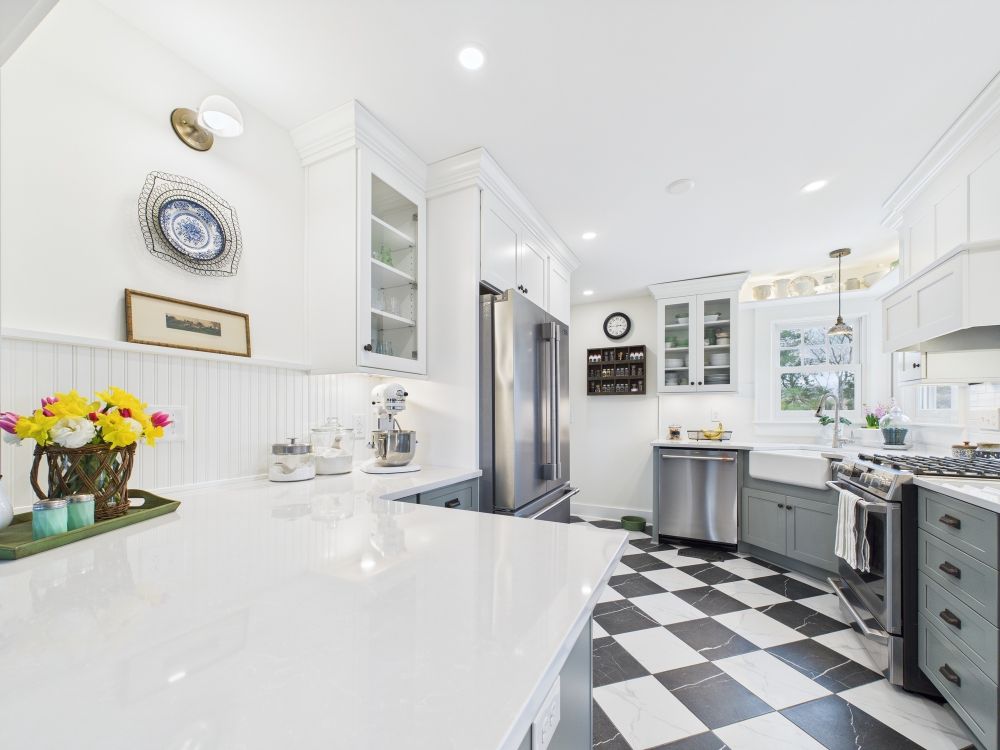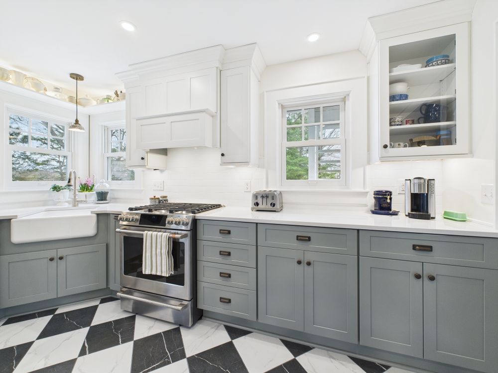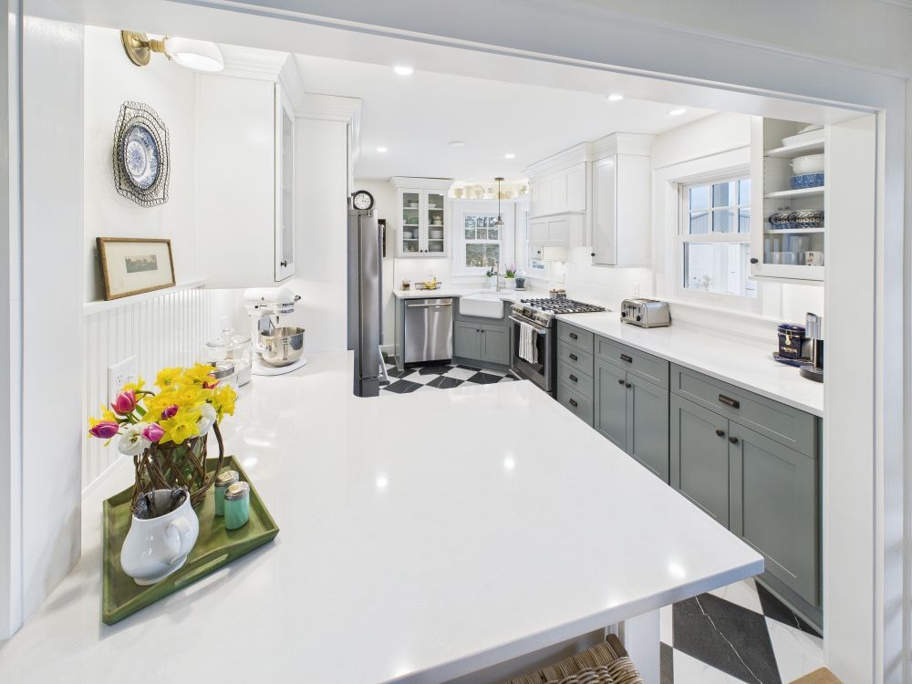 This kitchen now features brighter cabinetry, clean counters, and a refined layout that adds better storage and creates a lighter, more comfortable space that feels easier to use throughout daily cooking and gathering.