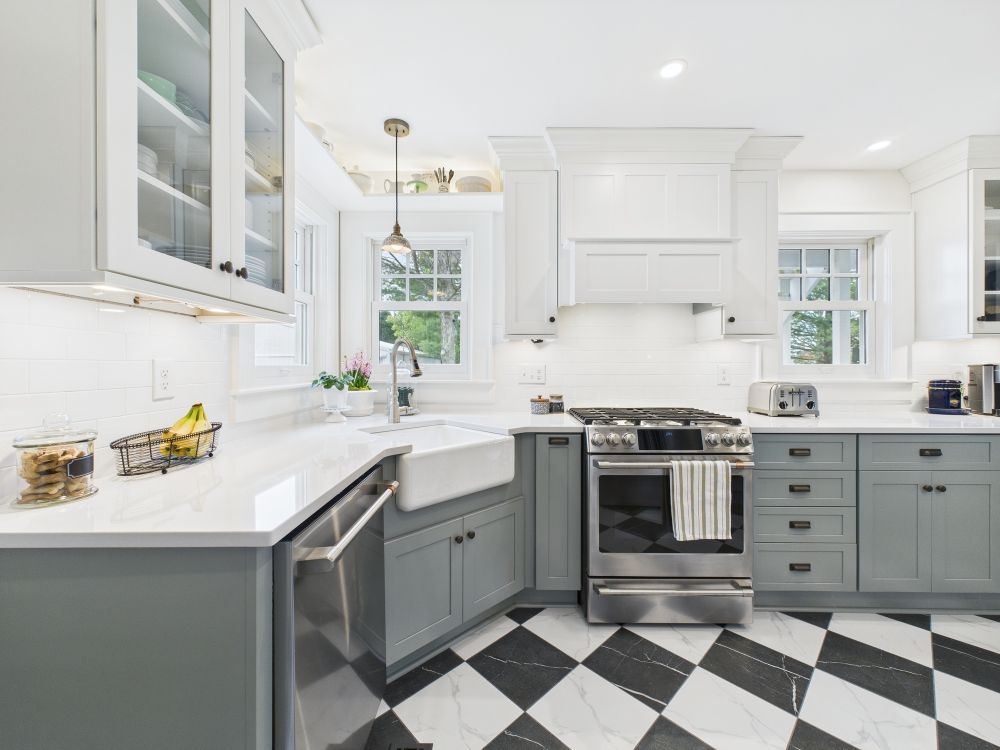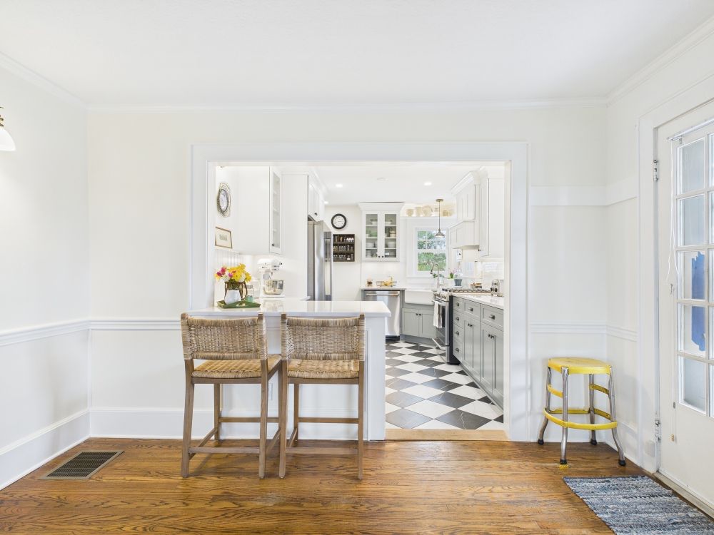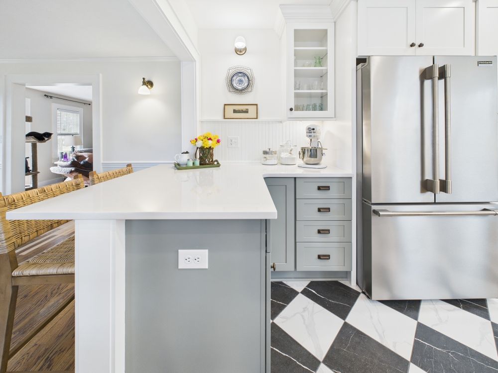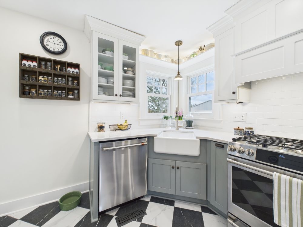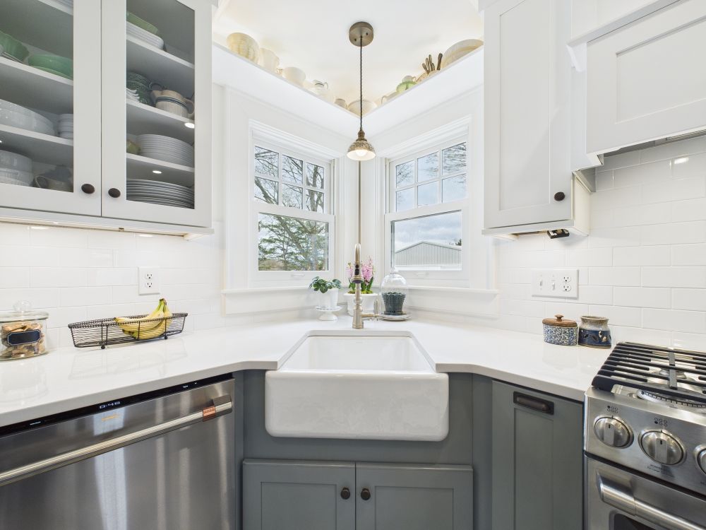 This kitchen now features brighter cabinetry, clean counters, and a refined layout that adds better storage and creates a lighter, more comfortable space that feels easier to use throughout daily cooking and gathering.