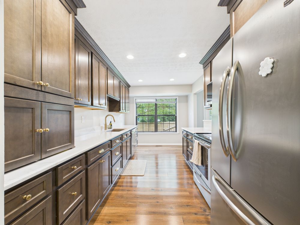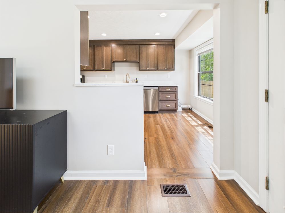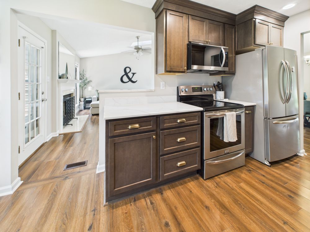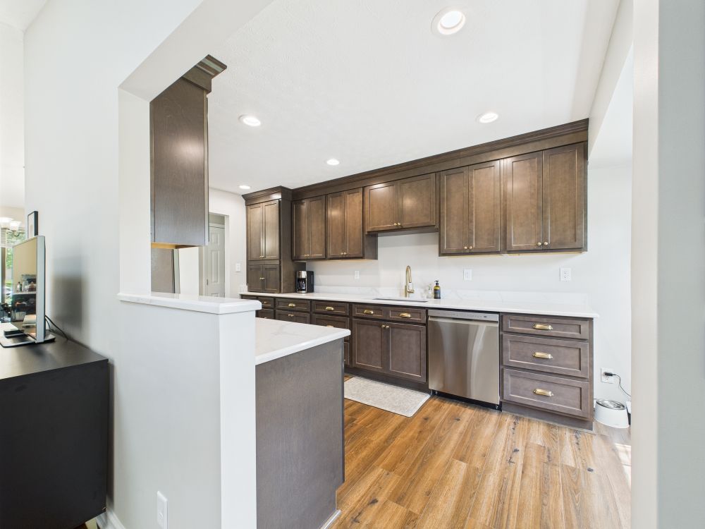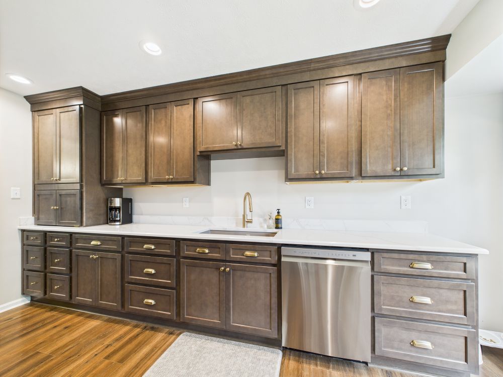 We transformed this kitchen with brighter surfaces, updated finishes, and improved layout flow to create a space that feels more open, comfortable, and practical for everyday cooking and gathering while giving the room a clean, modern look.